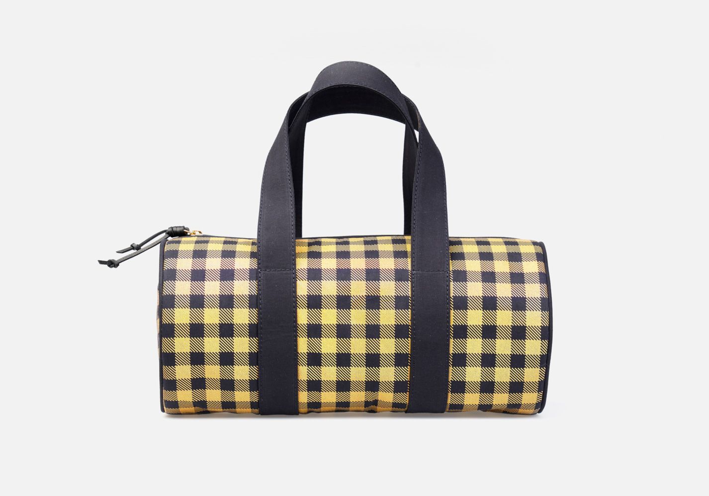 NAVY BLUE COLOUR CYLINDER SHAPED BAG WITH LAMINATED GOLD PRINTED IN