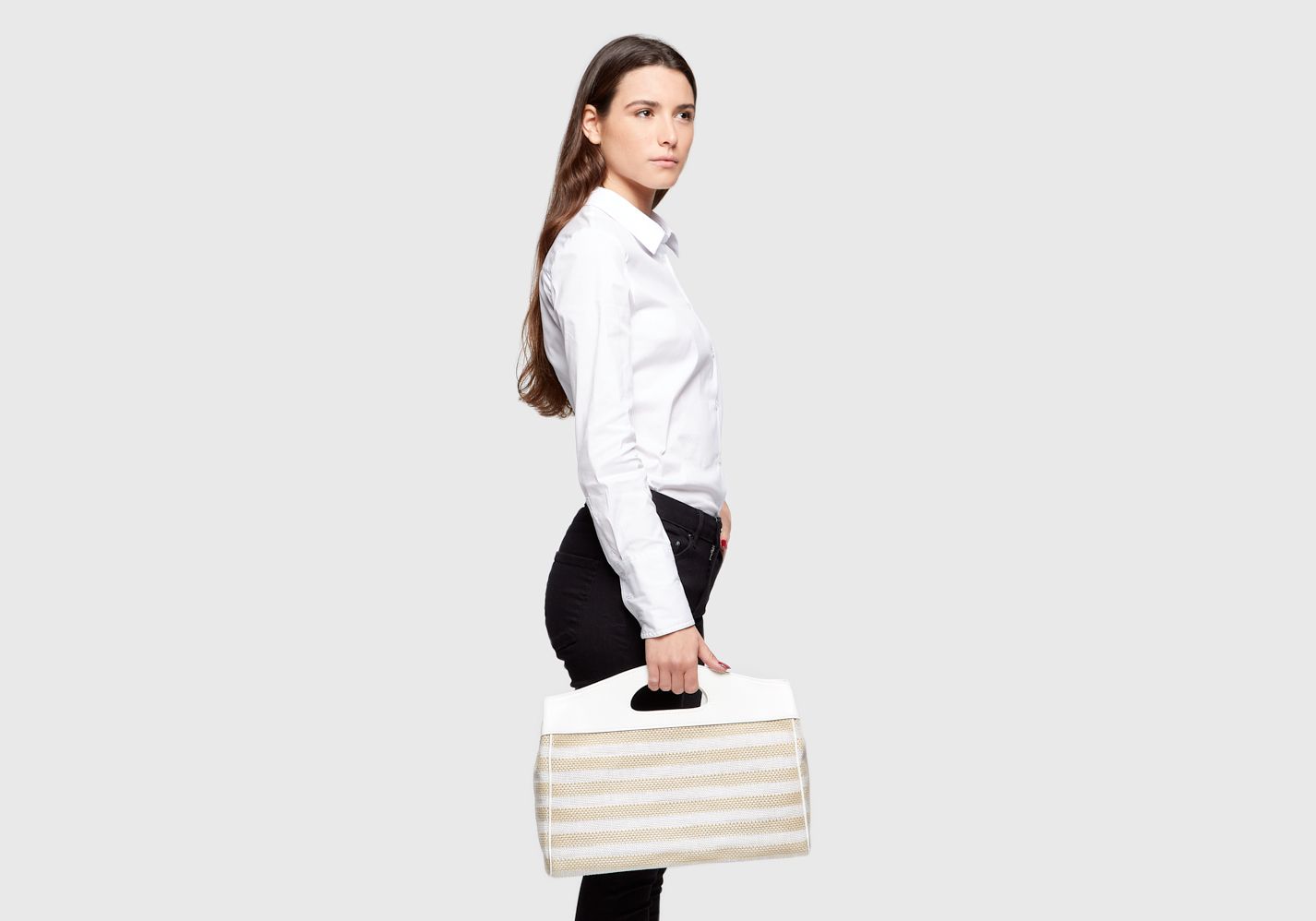 KODAK STRIPE HANDBAG COMBINED WITH OFF-WHITE IMITATION LEATHER.